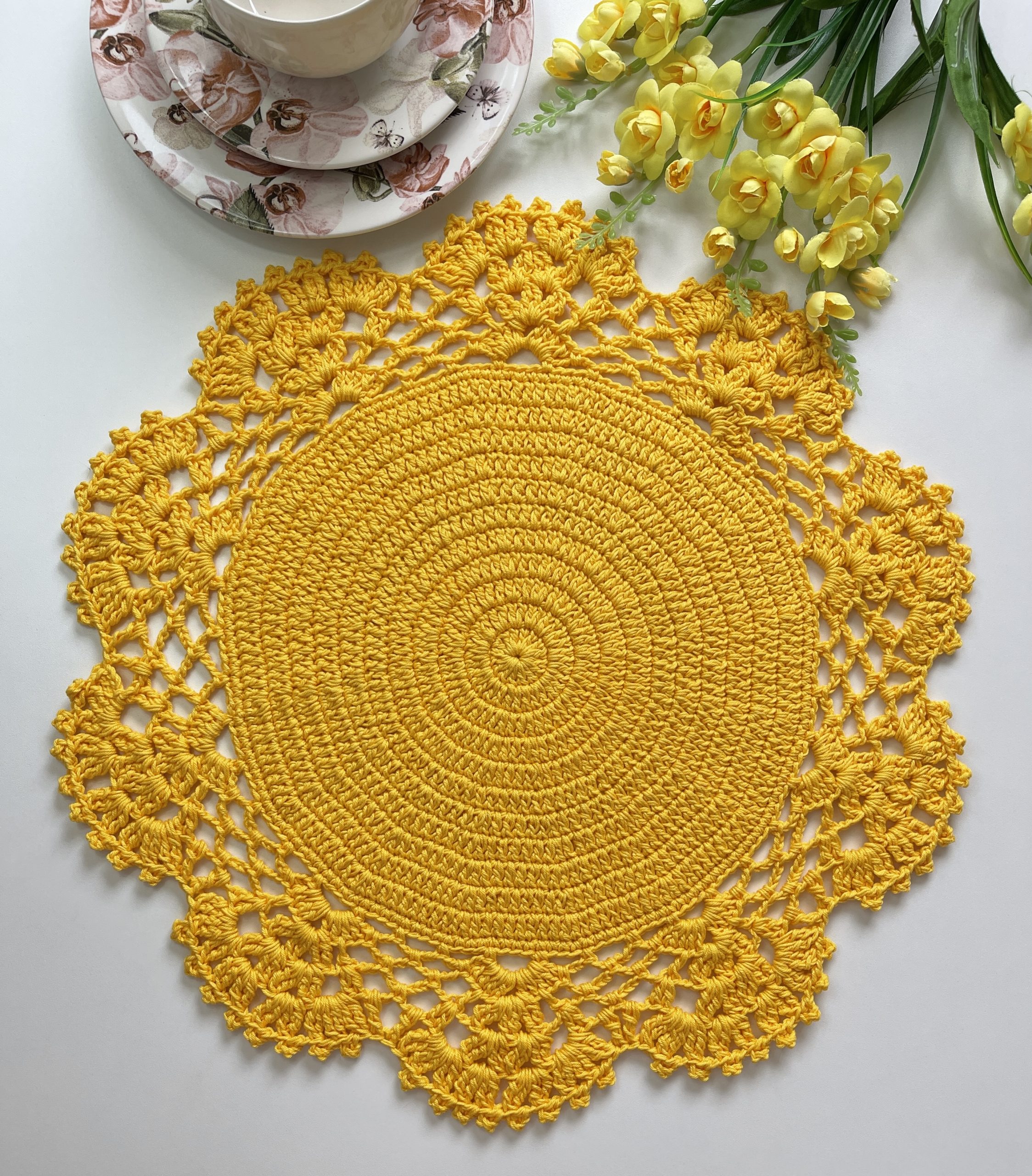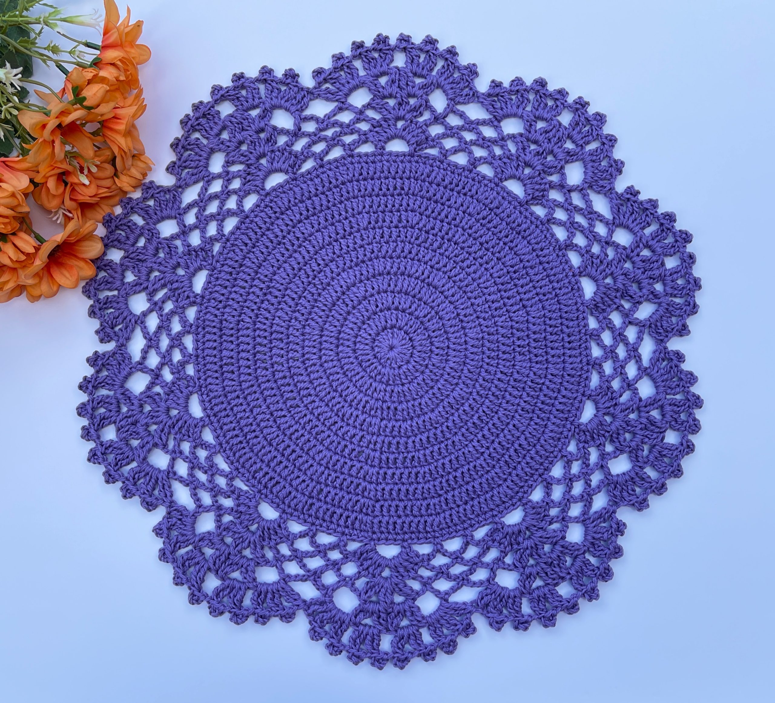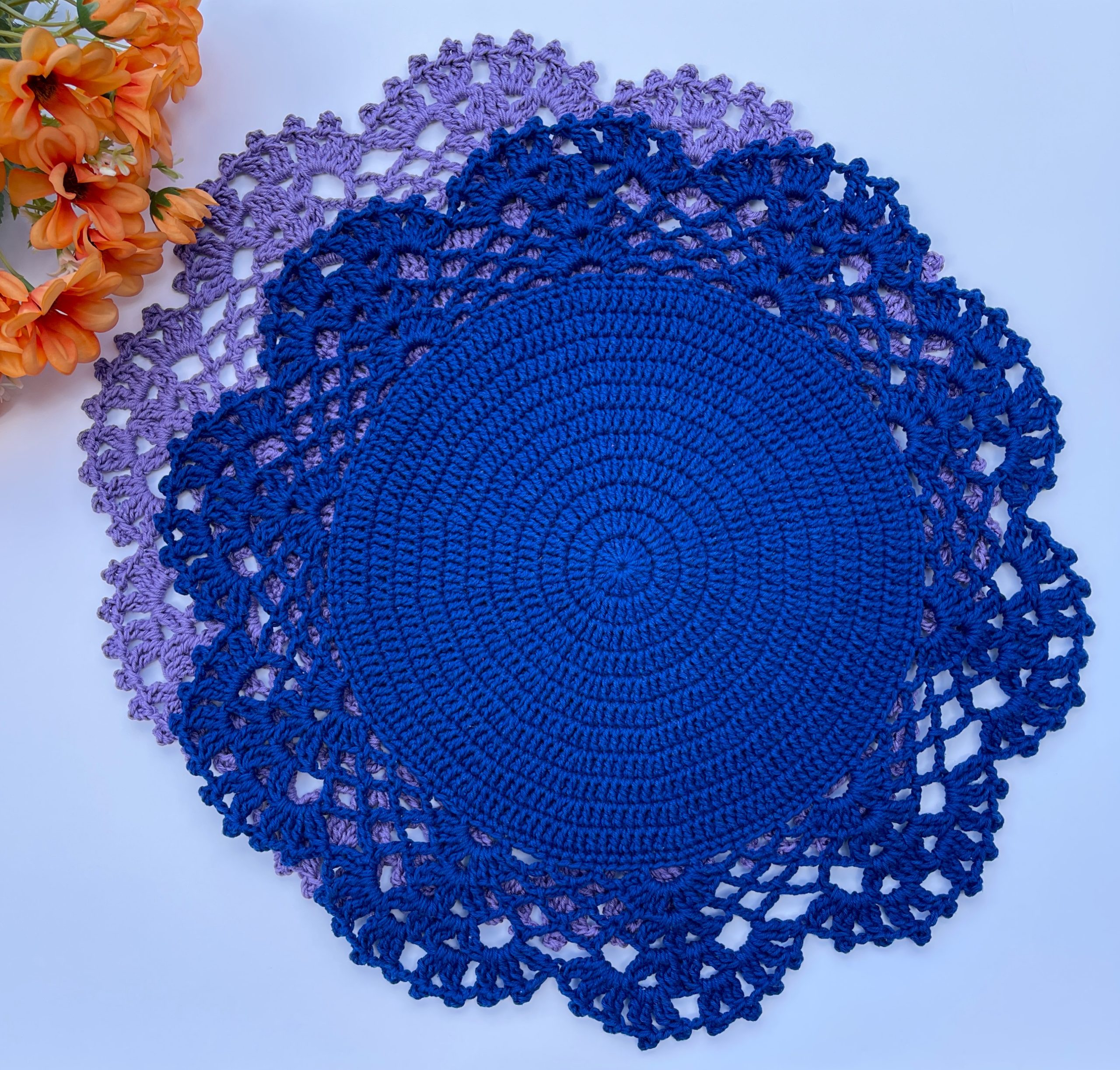 Lugar americano em crochê, confeccionado em fios 100% algodão, com medidas aproximadas de 40 cm de diâmetro.